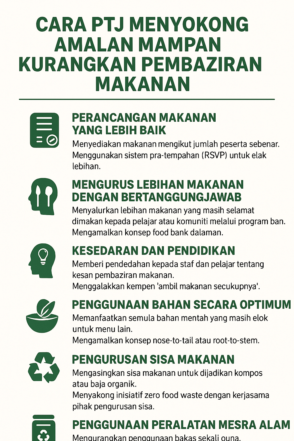 Strategi kelestarian memastikan elemen kelestarian menjadi fokus dalam perancangan dan pelaksanaan aktiviti di kampus.